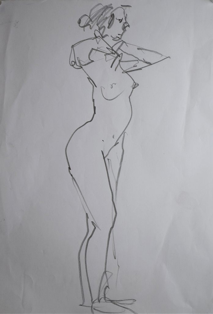 1分ポーズで、久しぶりにクロッキー描いたって感が、