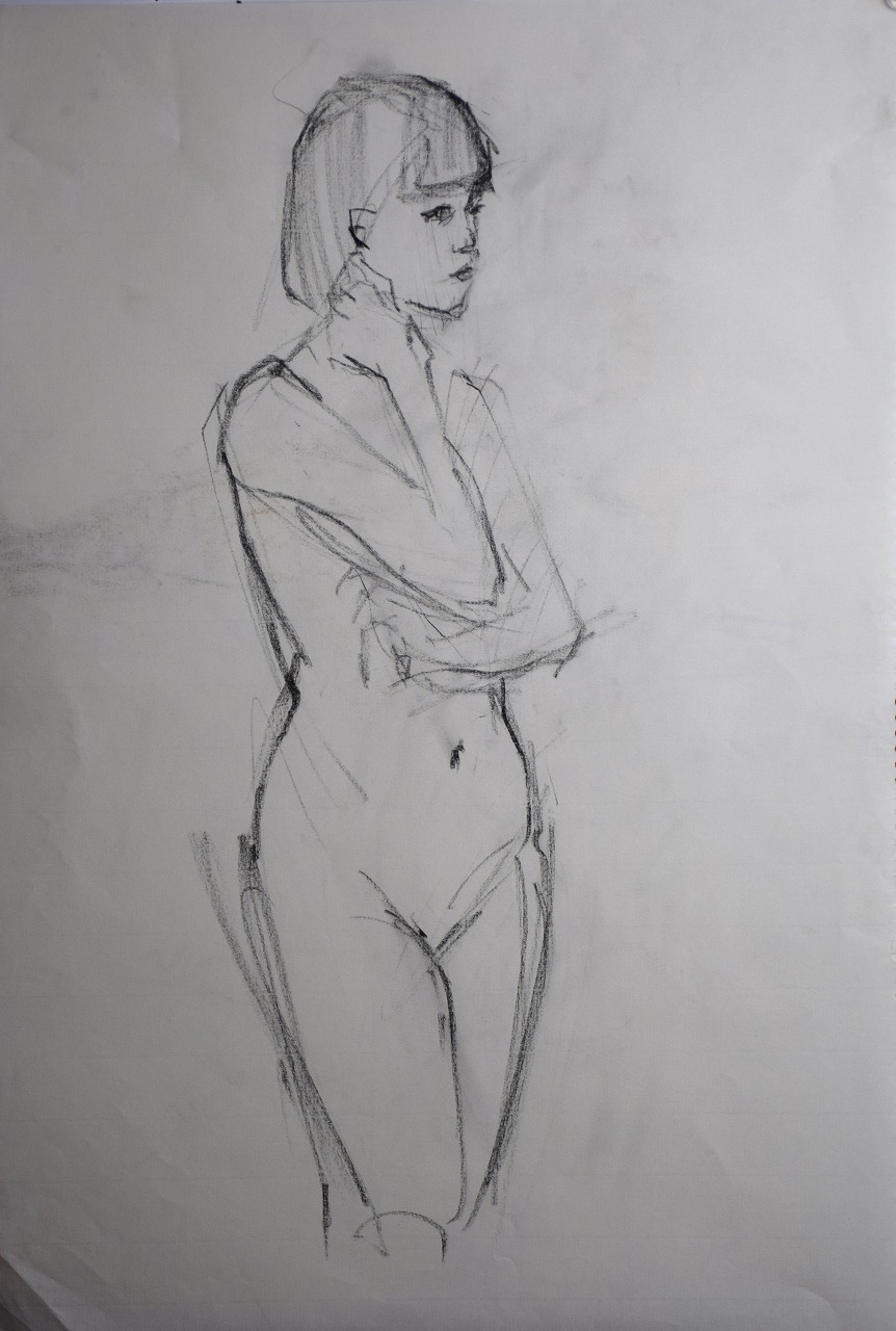 立ポーズでのパステル着色のクロッキー